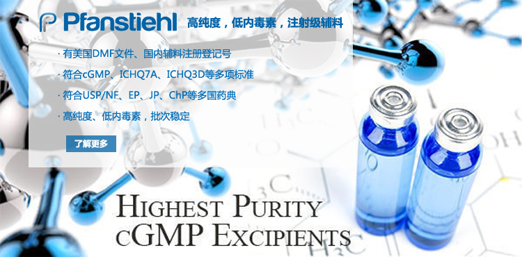 “熱烈祝賀Pfanstiehl的注射級甘氨酸Glycine(G-140)喜獲CDE登記號F20250000403, 這是Pfanstiehl產品獲得的第18個CDE登記號!”甘氨酸在醫藥輔料制劑中應用廣泛,, 可作為緩沖劑,增溶劑,穩定劑等,具有諸多優勢。Pfanstiehl秉承一貫高品質理念,為滿足全球生物制藥行業對于高品質甘氨酸的需求,隆重推出的注射級甘氨酸Glycine (G-140), 具有超高純度,超低內毒素,超低金屬殘留的特點,單獨檢測29種金屬離子,并且新增DNA,RNA,DNA酶,RNA酶和脂肪酶,亞硝酸鹽等多項質量指標的檢測,符合多國藥典規定(USP, EP, BP, JPE, ChP),可用于生物治療性藥物和疫苗的生產。產品信息:· 產品名稱:Glycine, High Purity, Low Endotoxin, Low Metals, USP, EP, BP, JPE, ChP (G-140)· 中文名稱:甘氨酸· 分子式:C2H5NO2· 分子量:75.07 g / mol· CAS號:56-40-6· 產品貨號:G-140產品特點: · 超高純度,超低內毒素,超低微生物含量,超低金屬雜質殘留· 質量指標新增DNA,RNA,DNA酶,RNA酶,脂肪酶和亞硝酸鹽檢測· 符合多國藥典:USP, EP, BP, JPE, ChP· 符合ICH Q3D標準· 符合GMP標準· 已獲DMF和CDE登記號 產品應用:· 緩沖劑· 穩定劑· 增溶劑如果您對Pfanstiehl注射級別Glycine G-140感興趣,歡迎聯系Pfanstiehl 中國區代理商北京西美杰科技有限公司獲得如下詳細的產品概況說明文件和測試樣品。Pfanstiehl Inc.最新產品系列如下,歡迎聯系北京西美杰科技有限公司獲取100g裝免費樣品。北京西美杰科技有限公司為Pfanstiehl中國代理,為客戶提供完善的技術支持與售后服務。歡迎撥打西美杰客服電話400-050-4006或者登陸網站www_xmjsci_com.859cdh.cn了解更多信息。 更多>
